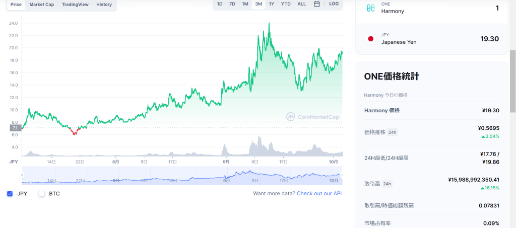 harmony(one)(仮想通貨)の現在です。