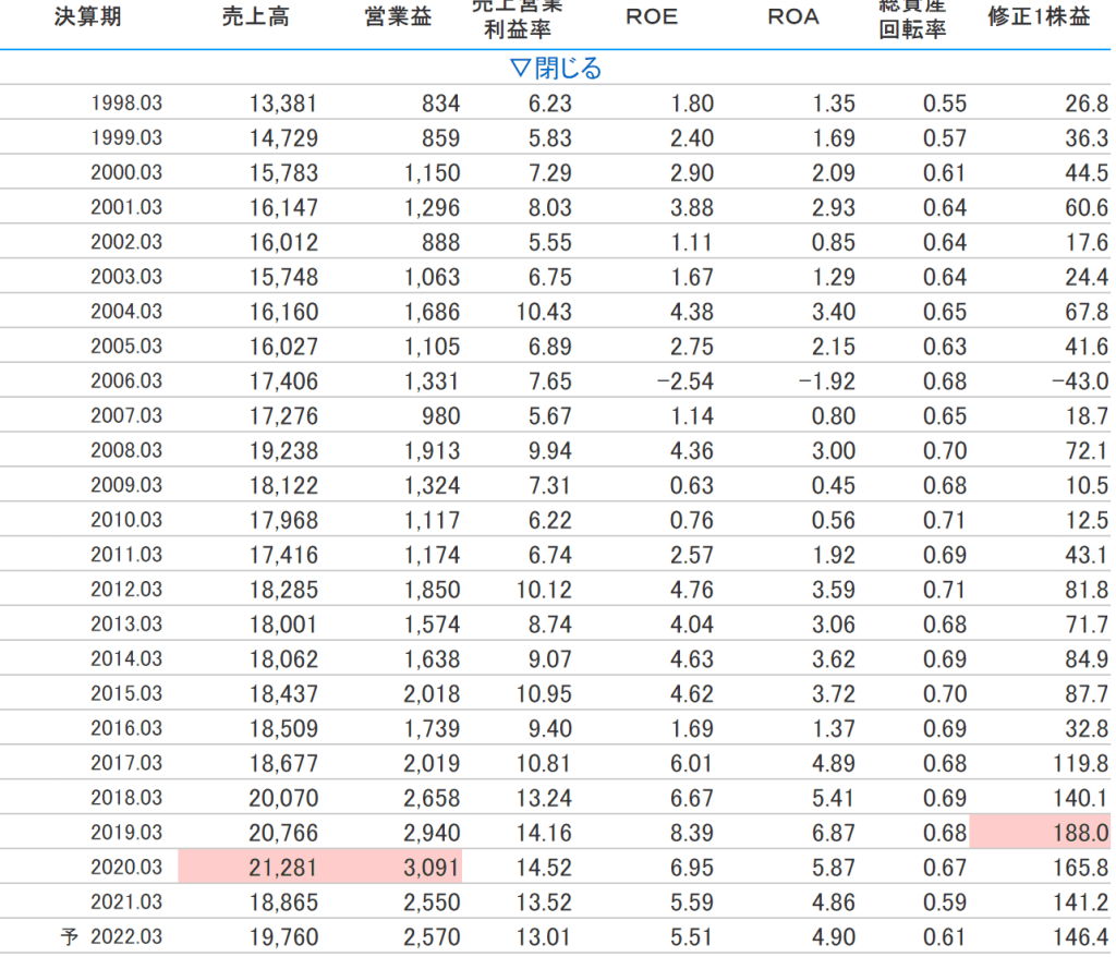 2020年3月期が最高益だったようですね。コロナの影響はまだこれからという感じだったのでしょうか。