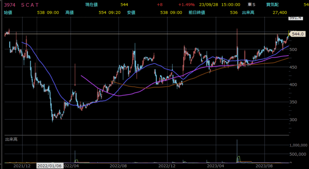 チャート的に気になるのは、SCAT(3974)ですが、ファンダメンタルに今のところ惹かれないという感じかな~、、、
