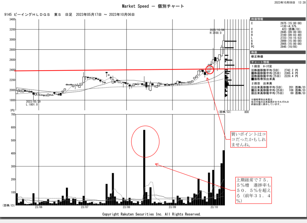 ビーイングホールディングス(9145)は逆行高でしたね。監視銘柄だったんですが、するすると上昇してしまいました💦