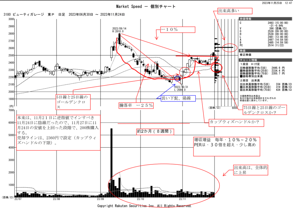 実は11月27日にもう1銘柄購入していたのですが、それは損切の予感です。