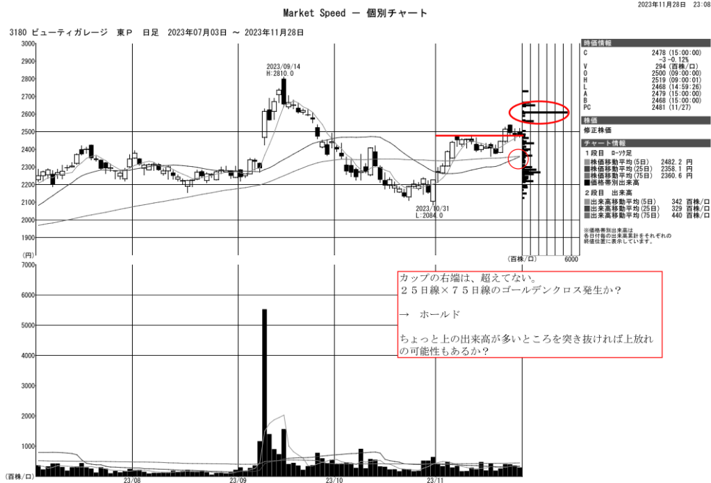 少し含み損ですが、今のところホールドです。